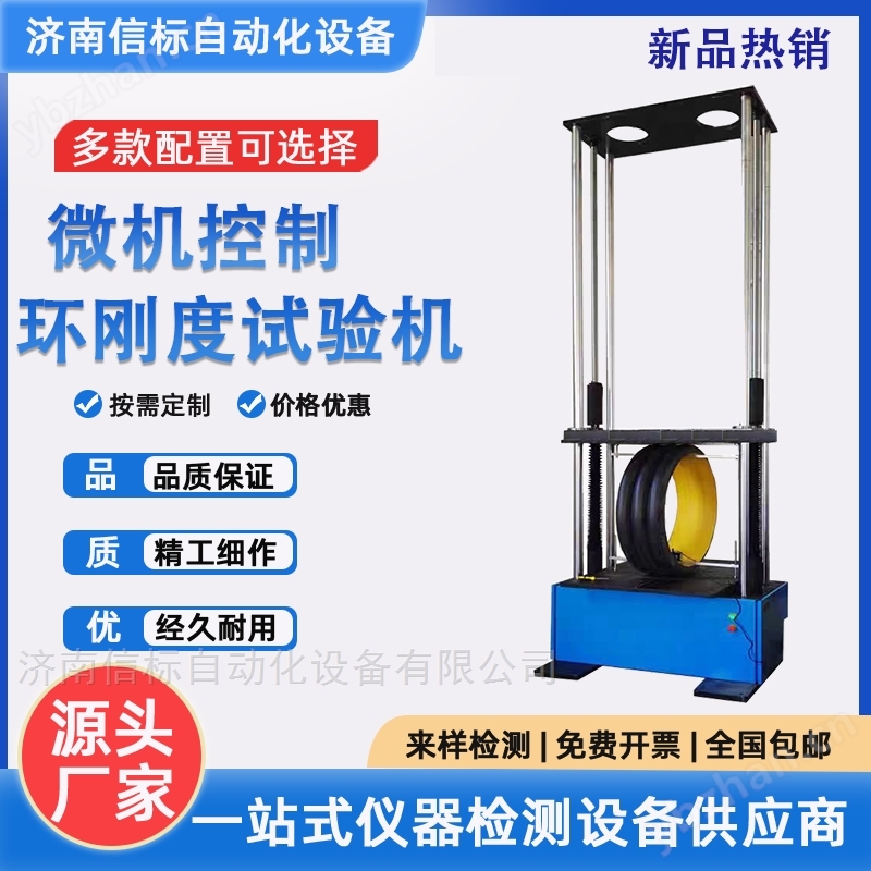 环刚度塑料弯曲挤压剥离强度试验机主机与辅具的设计融汇了济南信标公司的技术,外形美观,操作方便,性能稳定可靠。系统通过专用控制器,经调速系统控制交流伺服电机转动,经减速系统减速后通过进口精密滚珠丝杠副带动横梁上升、下降,完成试样的拉伸、压缩等力学性能试验,无污染、噪音低,效率高,具有较宽的调速范围