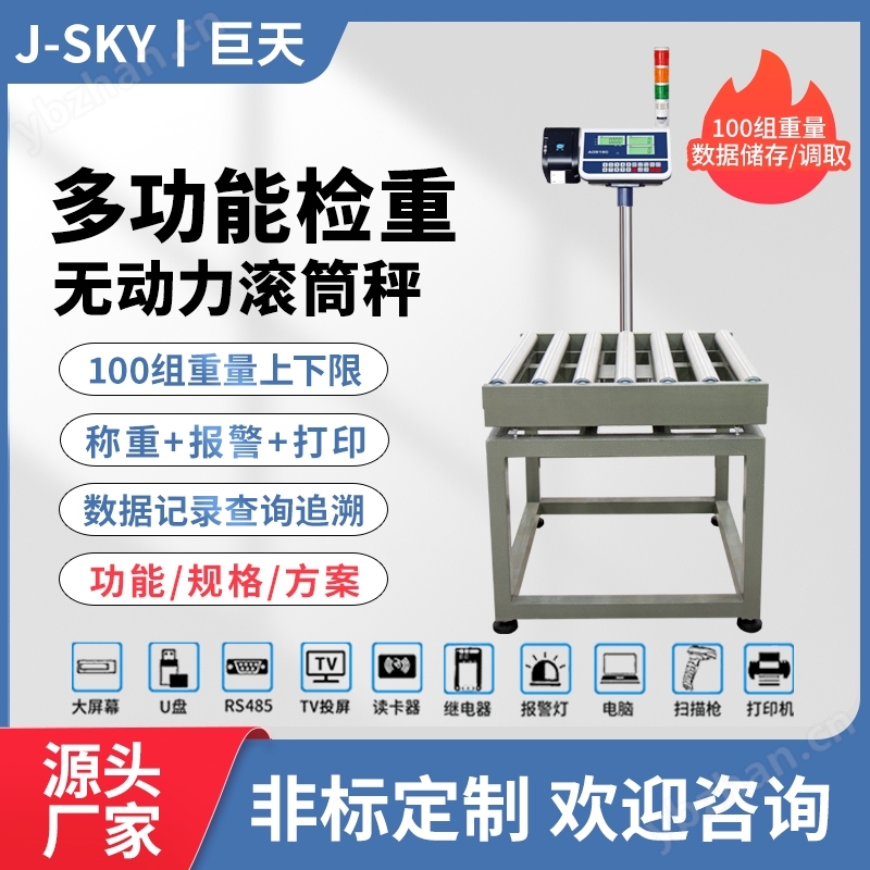 大量程300kg不锈钢滚轴秤报警打印电子秤