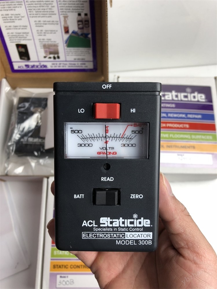 型号:ACL-300B;产地:美国;类型:指针式静电电压测试仪;测量范围:0--30KV;使用9V电池,并具有电池测试功能;再现性±1%,精确度±10%;具有立即归零及接地补偿功能;重量:5.5盎司。