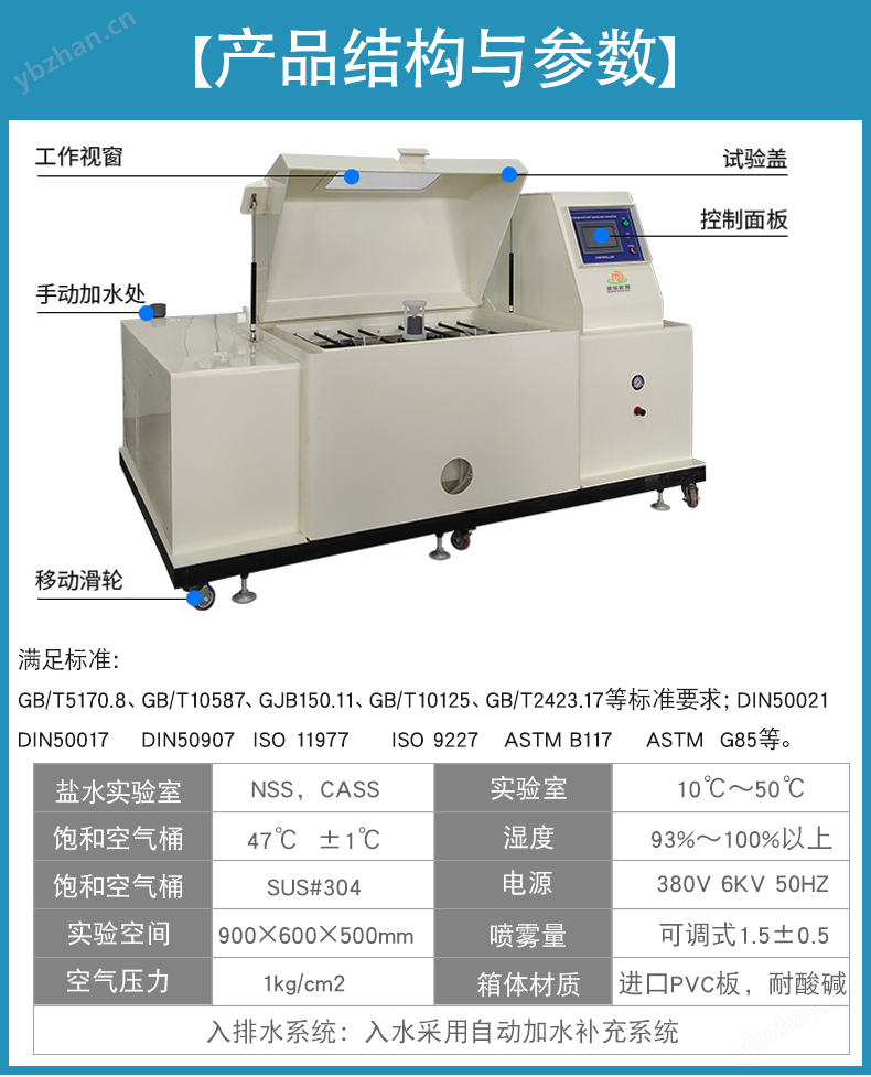 盐雾喷洒系统: 产生并均匀喷洒特定浓度的盐雾溶液。