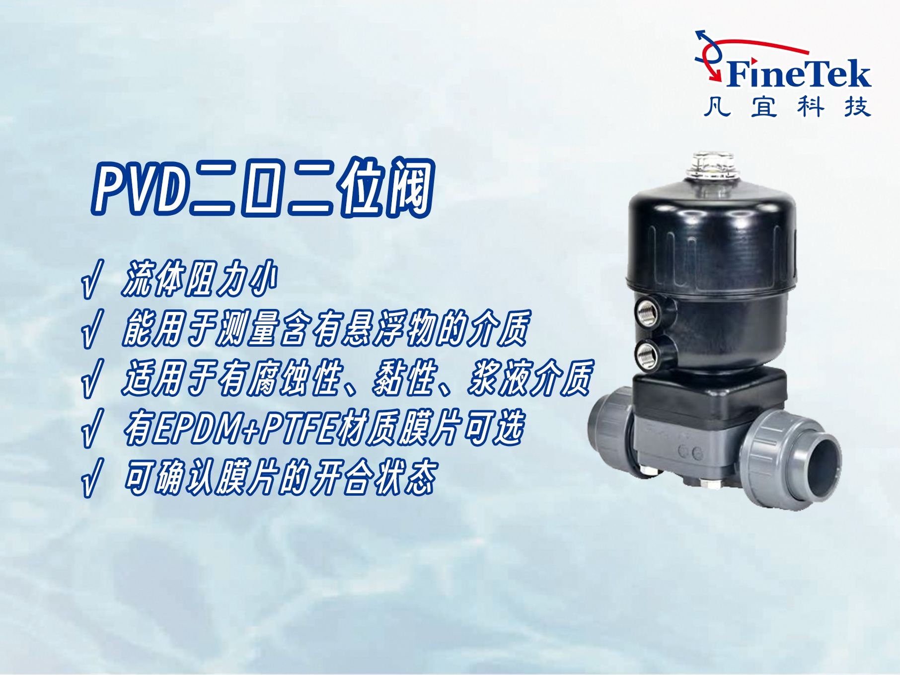 隔膜阀主体由阀体、膜片与驱动部件组成,材质采用耐磨塑胶材料作位阀体的组件,膜片选择塑胶及橡胶等有弹性、耐腐蚀特性的非渗透性材料制作而成。为确保介质纯净,并防止管路中介质冲击操控机构的可能,阀体内腔、阀盖内腔及驱动部件做隔开设计。其结构简单,密封性佳,易于快速拆卸与维修,现场可直接进行膜片更换,节省维修时间与成本。